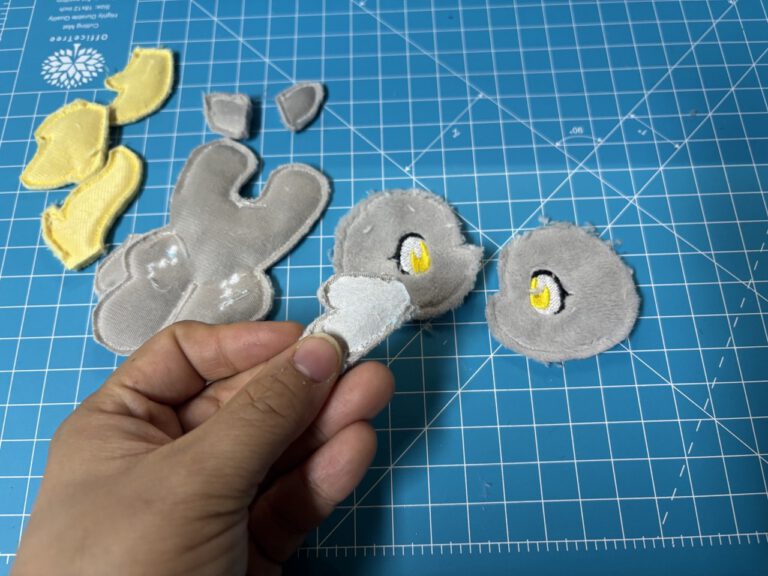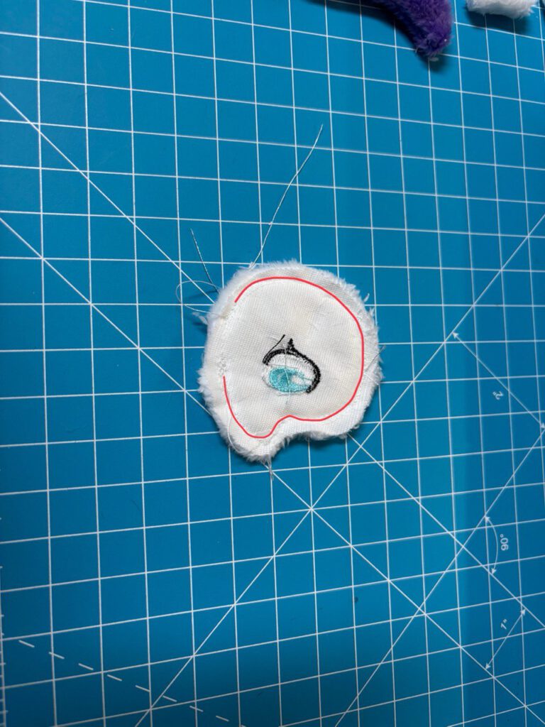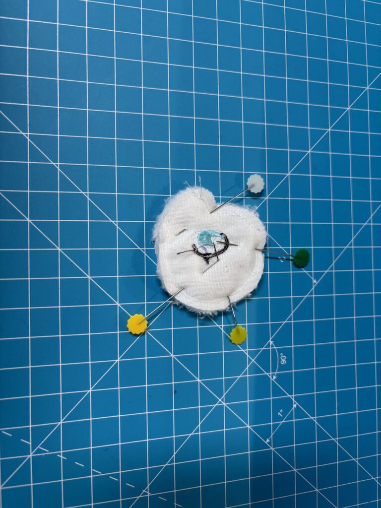 We start of carefully removing all the leftover embroidery backing the rough paper like stuff) and turning all pieces right sides out.