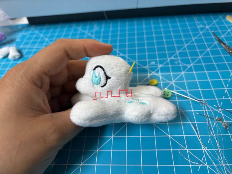 Turn your head inside out and stuff it. Close the opening of the head with a ladder stitch.