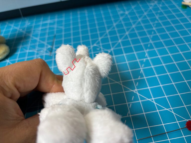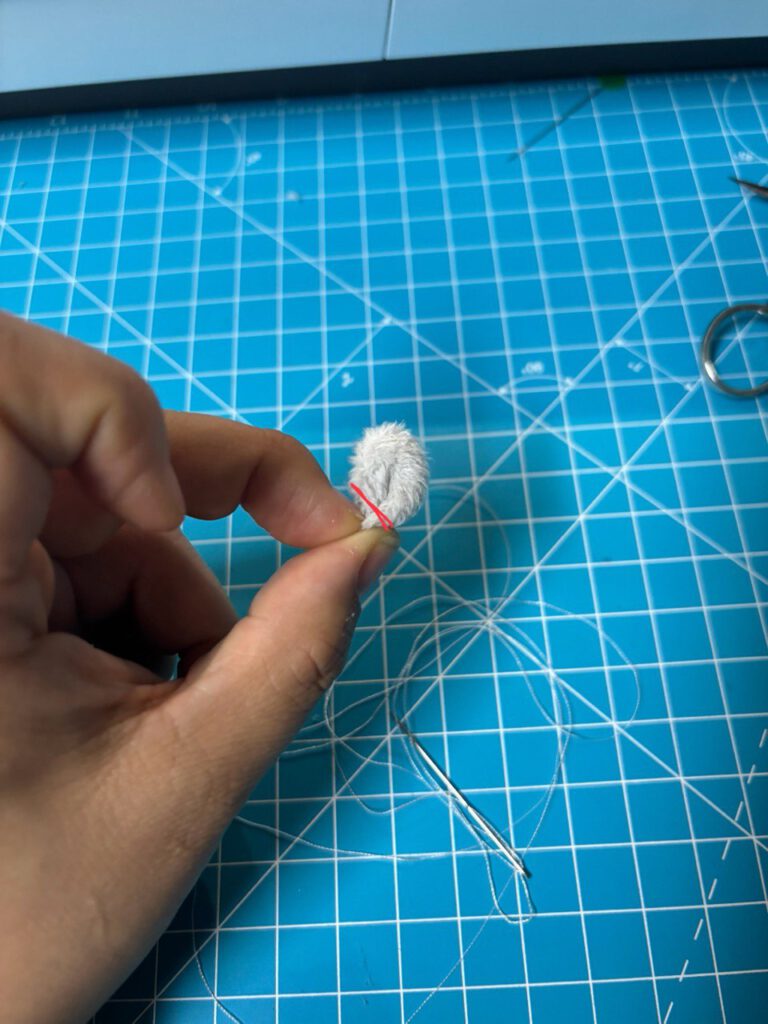 Test the positioning of your ears before attaching them and then add them on both sides with a ladder stitch to the head.