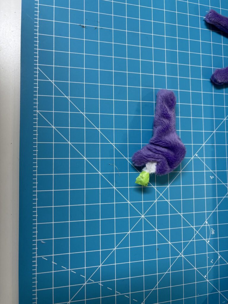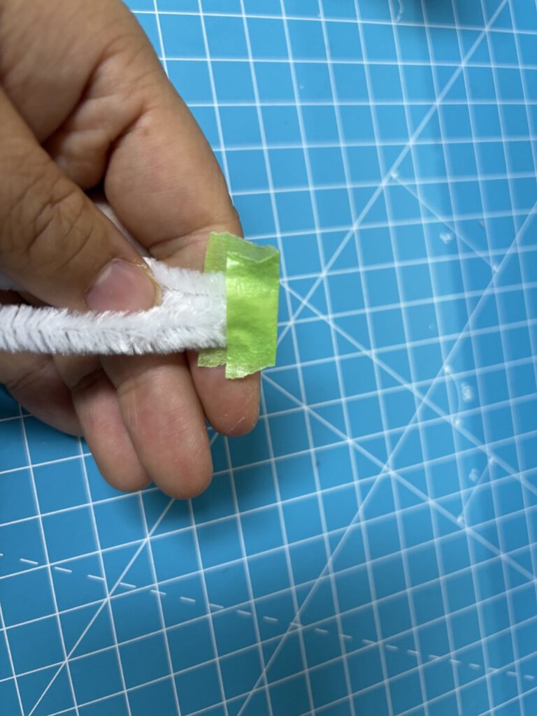 To avoid any wire ends poking holes in to the plush (or your fingers) take a piece of sticky tape and secure it over the edge.